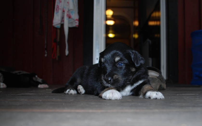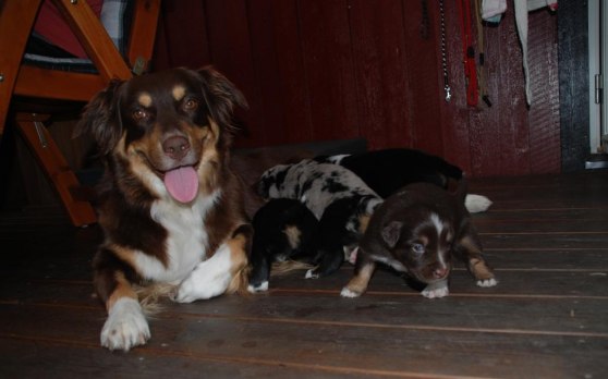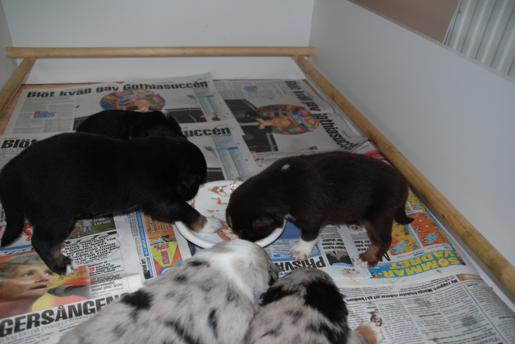 Valparna är inte så nöjda längre i sin låda och valprummet kan de utan och innan (tror de iaf.) och världen utanför lockar på di små. De har fått möta de andra hundarna och Trolla ser nogsamt till att ingen tänker hundnappa någon..så vi får allt passa lite på dem.